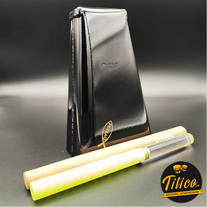 De tonalidad media, pintura electro-estática, no se despinta con el uso continuo, afinada a mano por el percusionista y luthier de cencerros James “Pezkao” en Cali, Colombia.