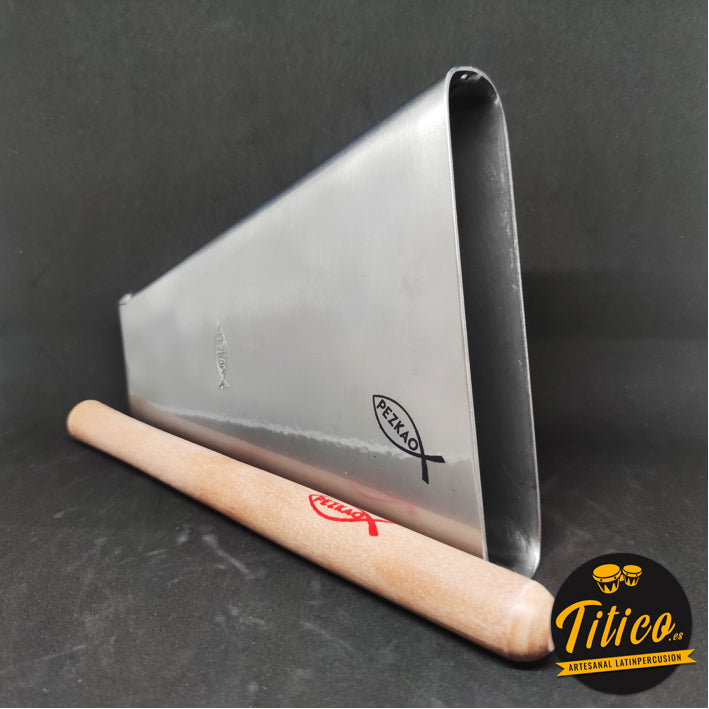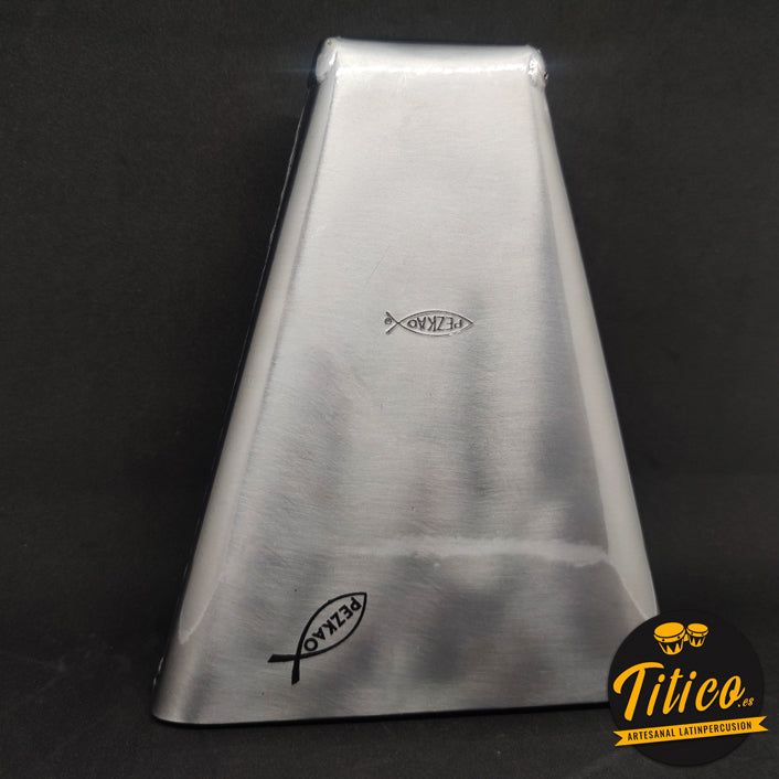 Campana Tone Pezkao Titanic, de tonalidad baja, afinada a mano por el percusionista y luthier de cencerros James “Pezkao” en Cali, Colombia.
