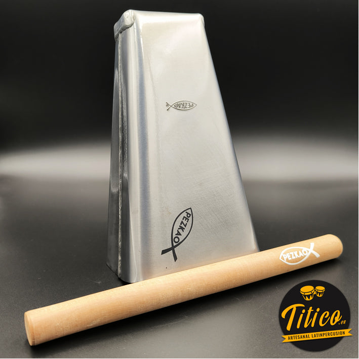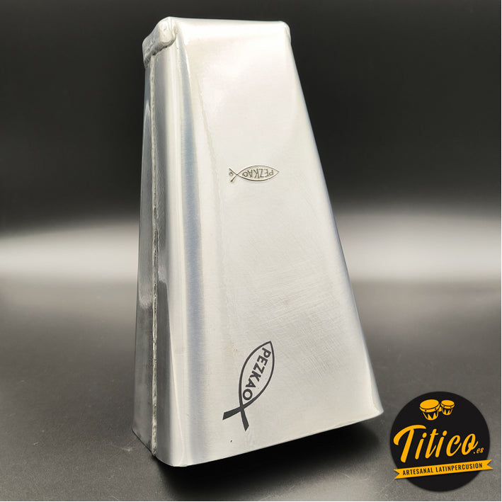 Campana Tone Pezkao J2, de tonalidad alta, afinada a mano por el percusionista y luthier de cencerros James “Pezkao” en Cali, Colombia.